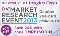 The 2013 NGMR Disruptive Innovation in Marketing Research Awards will be awarded at The Market Research Event (TMRE) in Nashville, TN October 21-23. Nominations should be sent to NGMRawards [@] NextGenMR.com with “NGMR Submission” in the subject line by no later than September 1st 2013. So that the panel has enough time to give just [...]